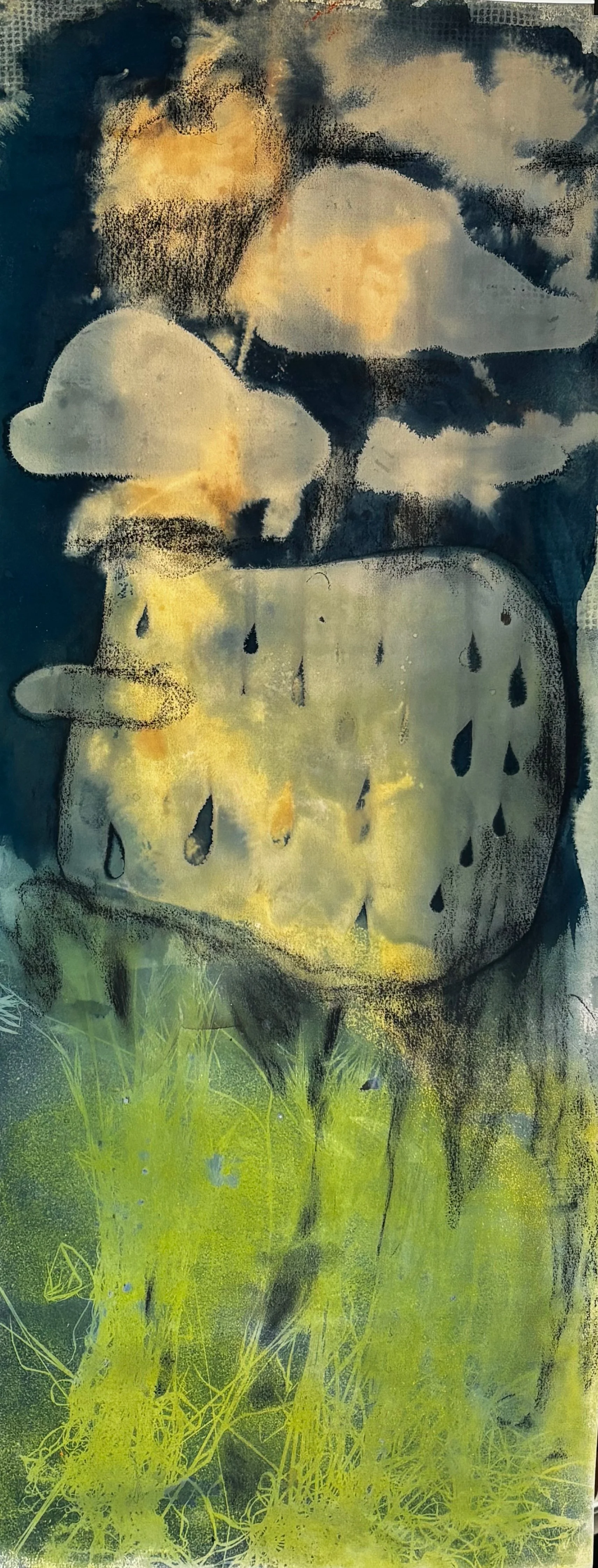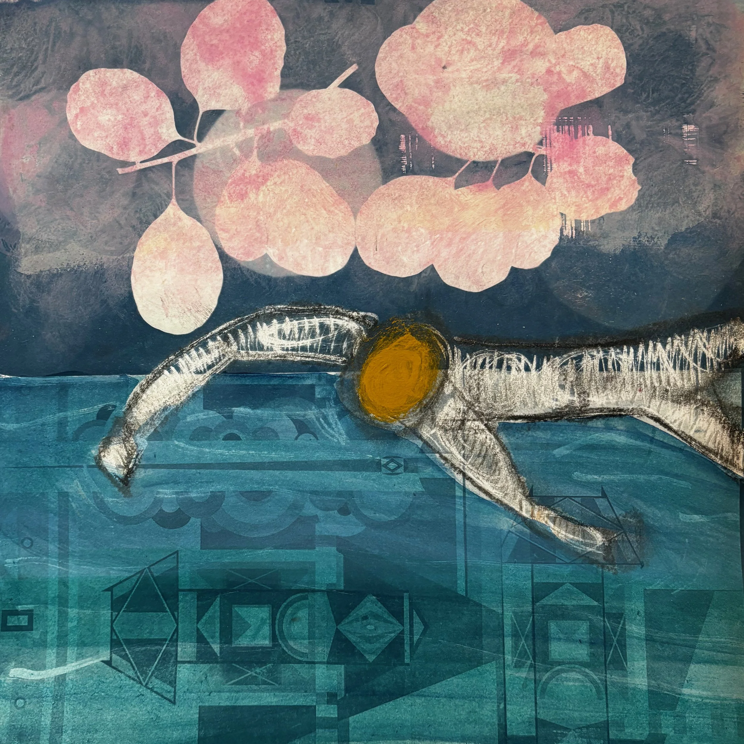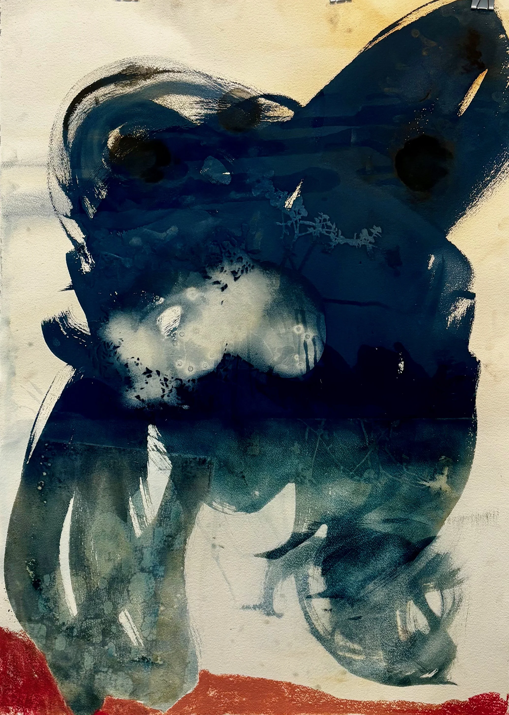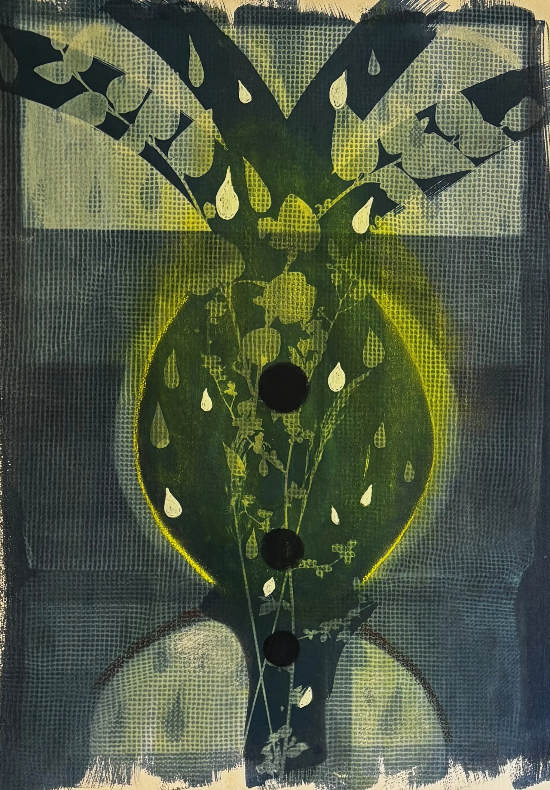 My experiments with cyanotype continue, this time merging lake and sky images with botanical printing from cyanotype.