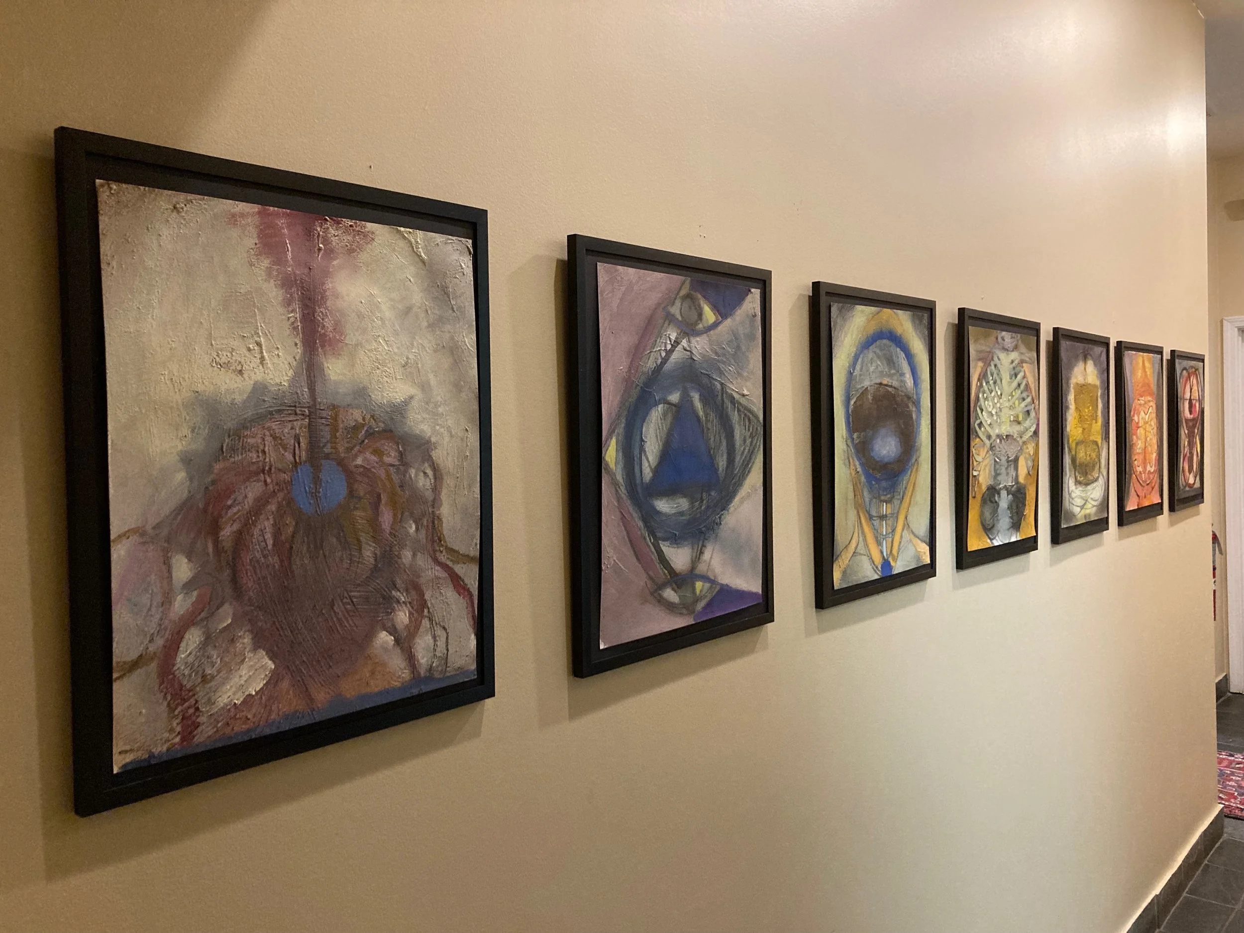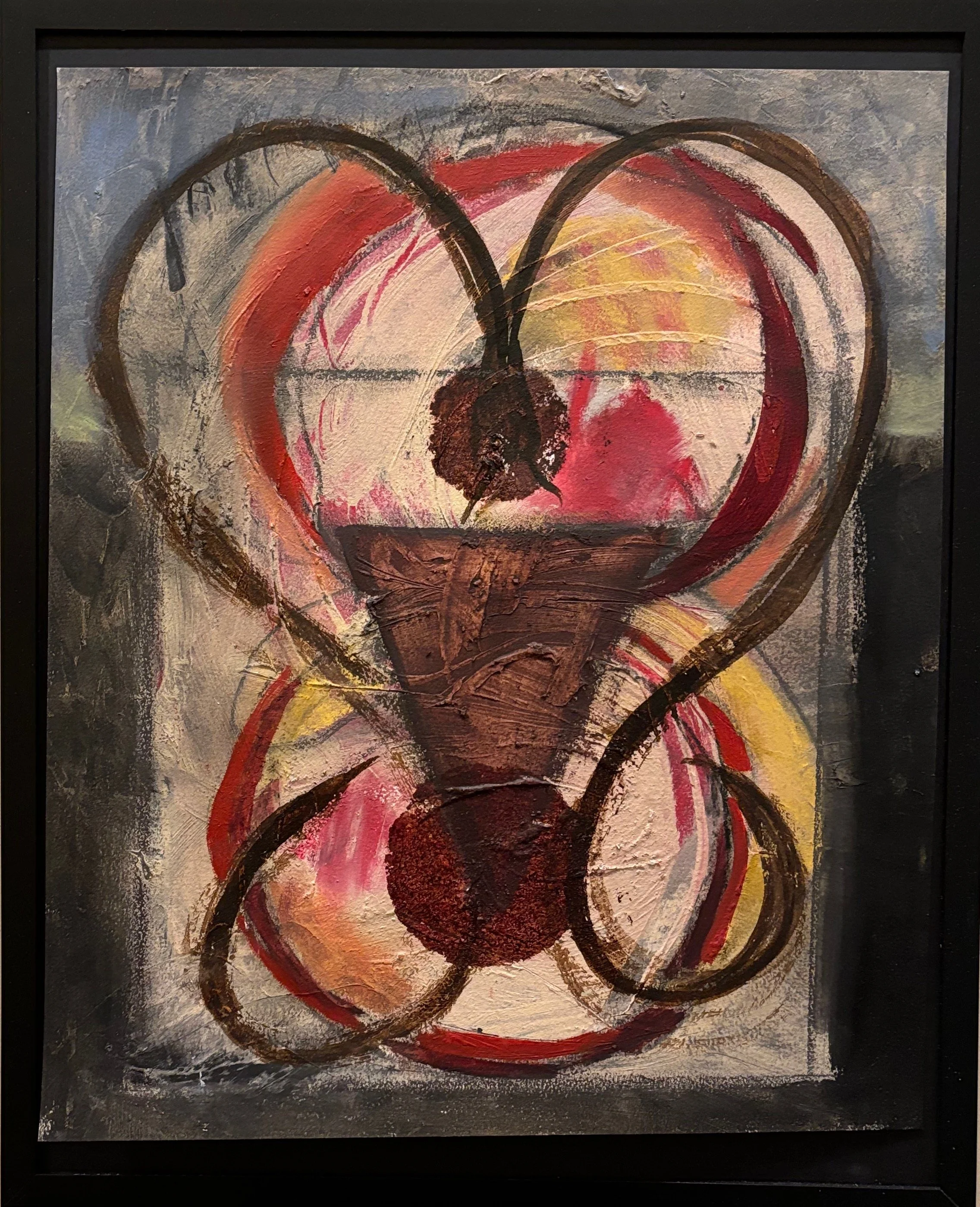 This sequence was created in the winter of 2025. Mixed media were applied pretty vigorously on a flat surface to paper, and I mixed in some ashes. I hoped to have captured some of my fascination with this system of energy centers in the body, adopting some of the Buddhist traditions around color and symbology while making them my own.