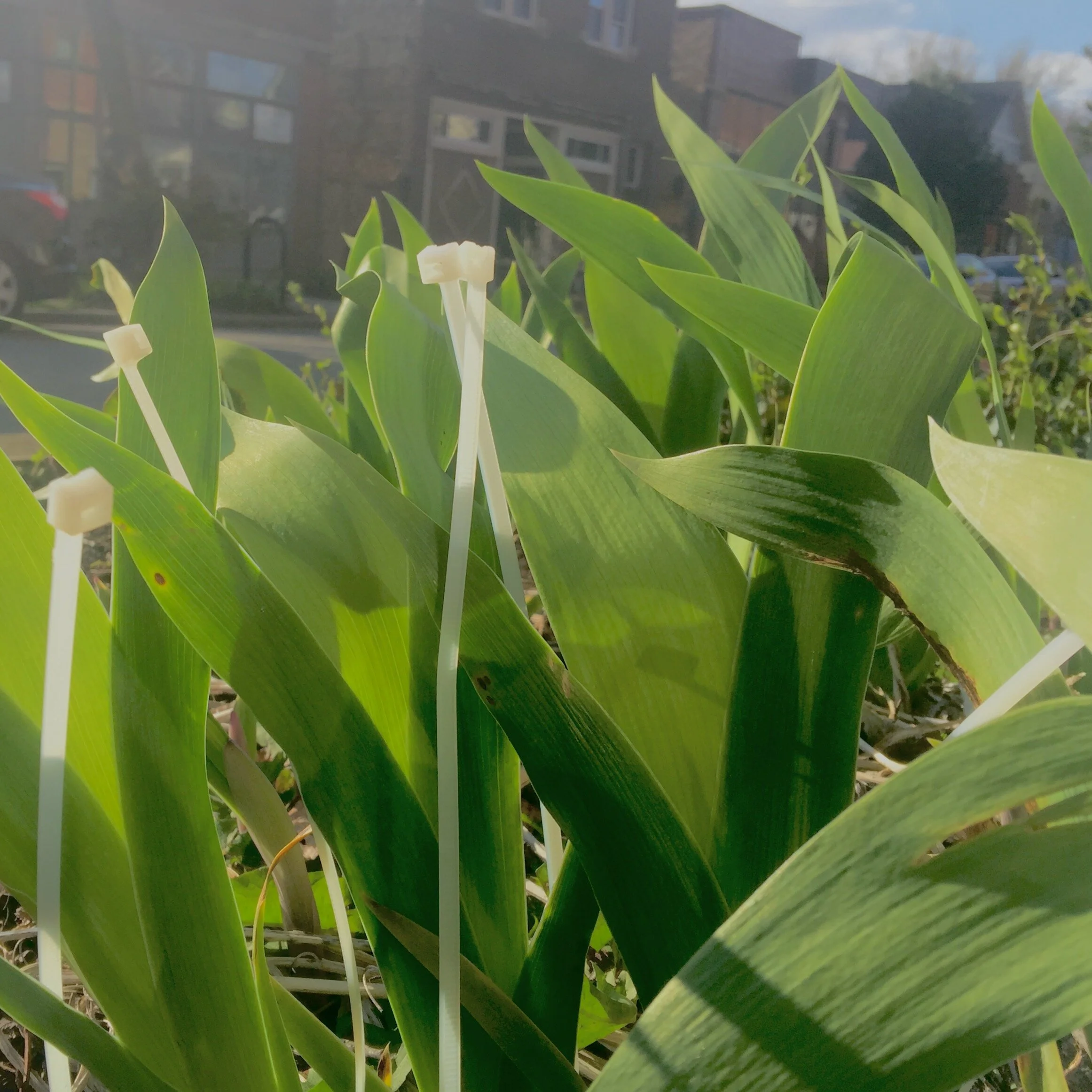 My example shown here is inspired by Earth Week: I paired something organic (iris shoots just outside the studio) with something inorganic (zip ties). You could do Andy Goldsworthy inspired outdoor installations with two materials?! Side-by-side sketches of ‘opposites’? Two different dogs straining at the leash?